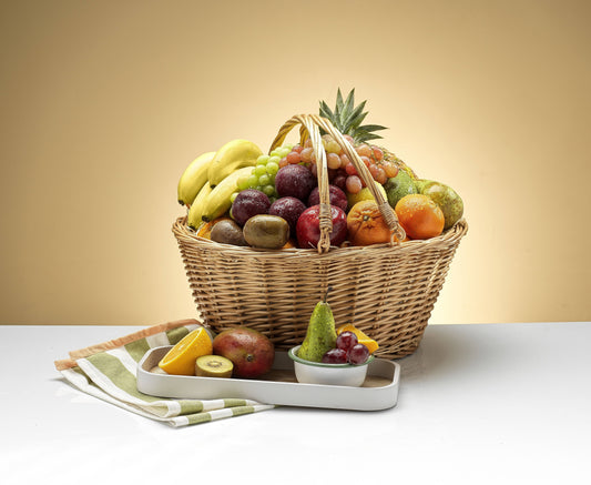 Show someone you care with a thoughtful fruit basket! We offer next-day delivery across the UK, Monday to Saturday. Choose from our seasonal, exotic, or deluxe hampers, the latter brimming with unique drinks and treats alongside the finest fruit. Perfect as get well gift, for birthdays or just to show you care.